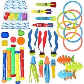 JOYIN 30 Pcs Diving Pool Toys for Kids Ages 3-12 Jumbo Set with Storage Bag Pool Games Summer Swim Water FishToys