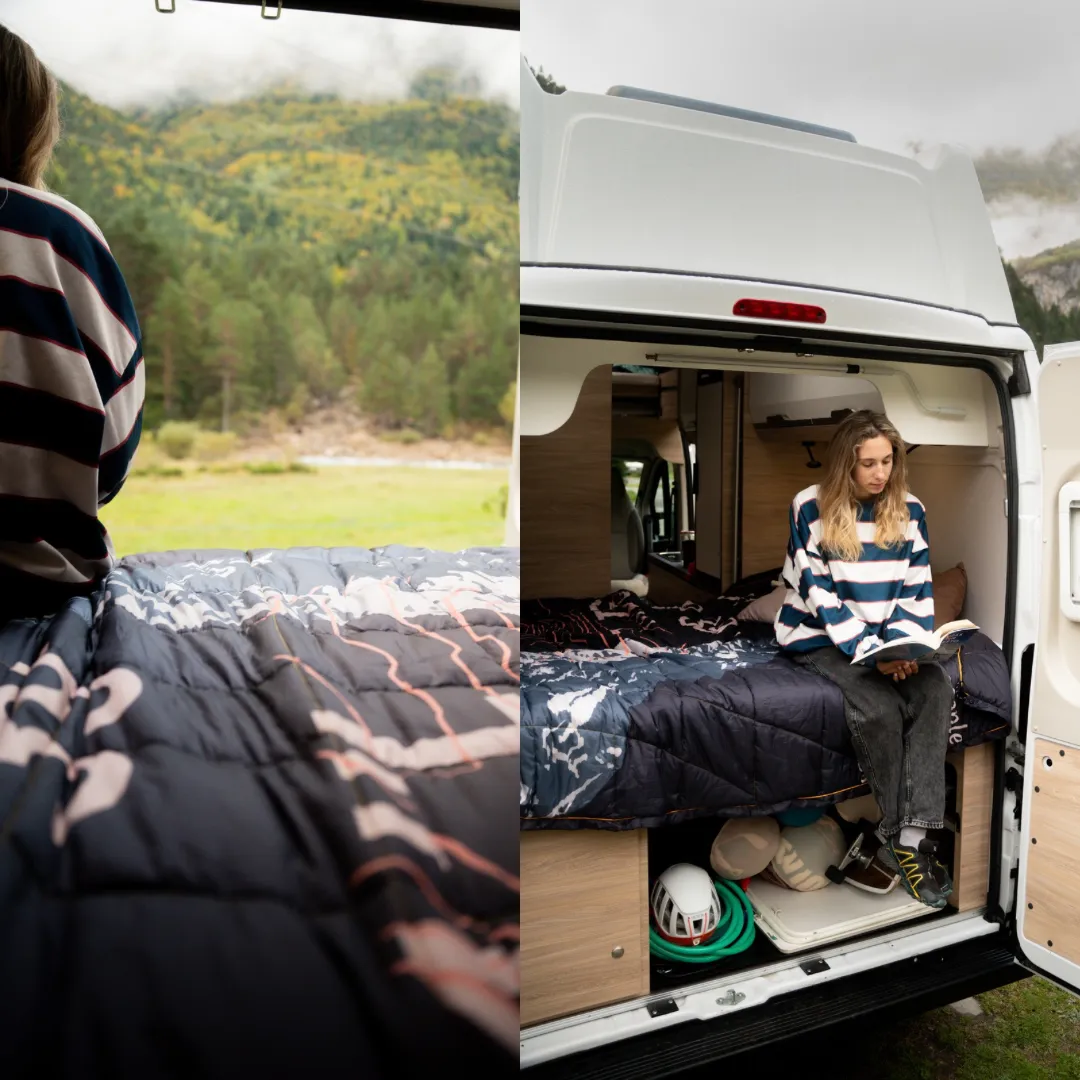 · Buttons to use it as a poncho, sleeping bag or connect them together