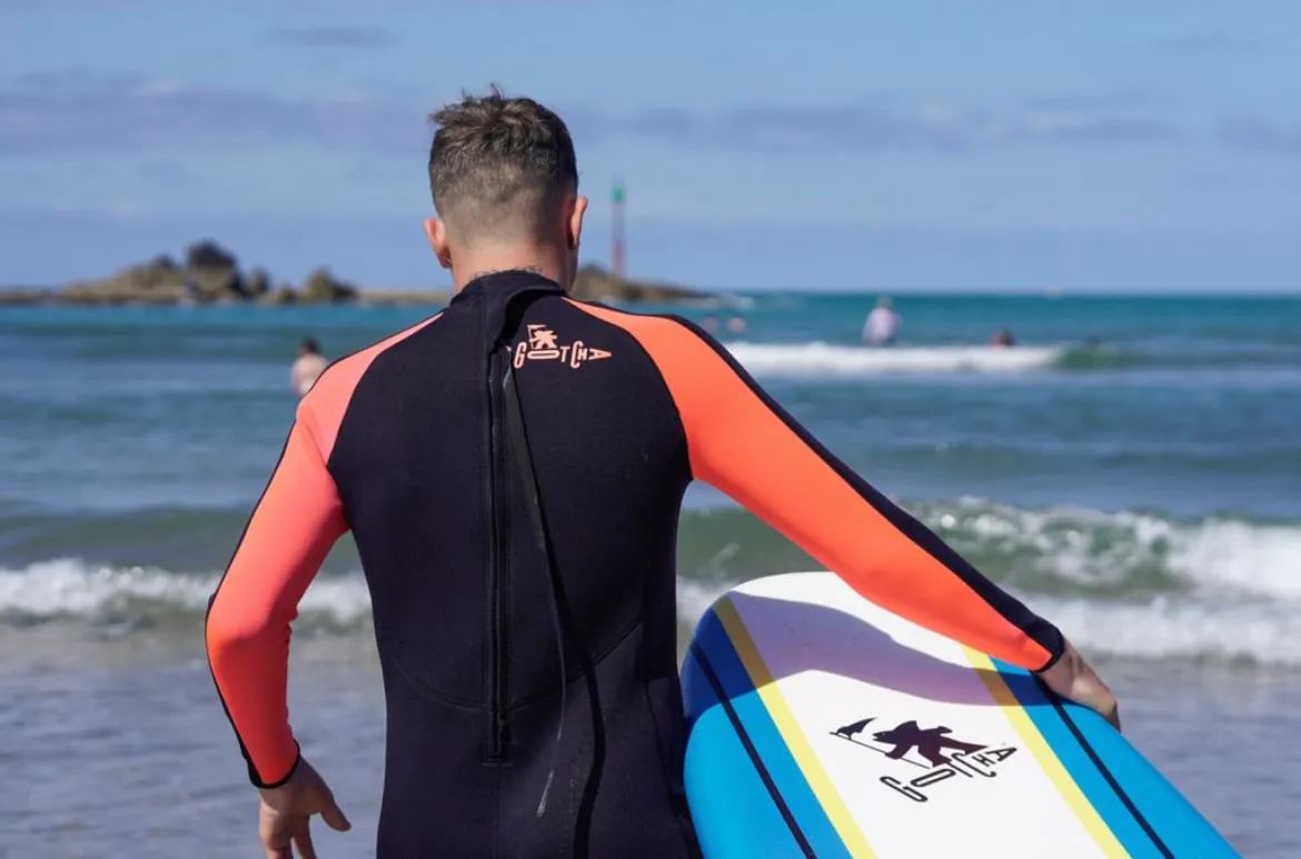Gotcha Wave One 4.3 Men’s Nylon SBR Long Sleeve Wetsuit with Back Zip, Black/Orange. Perfect for beginners and for surf schools