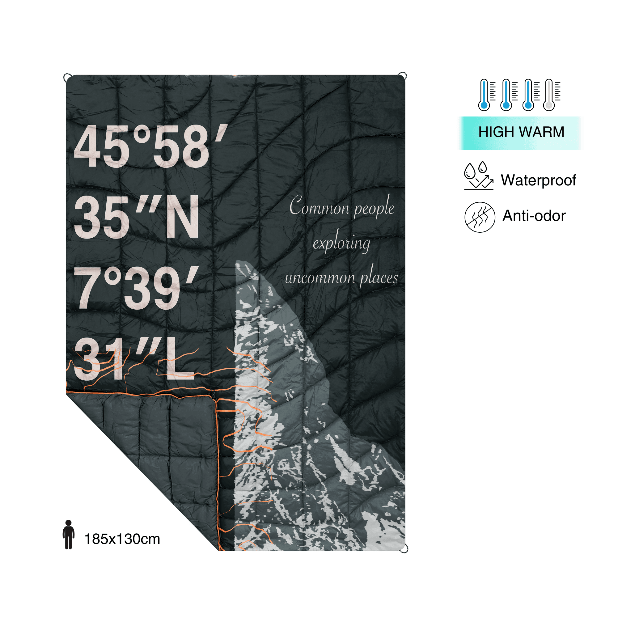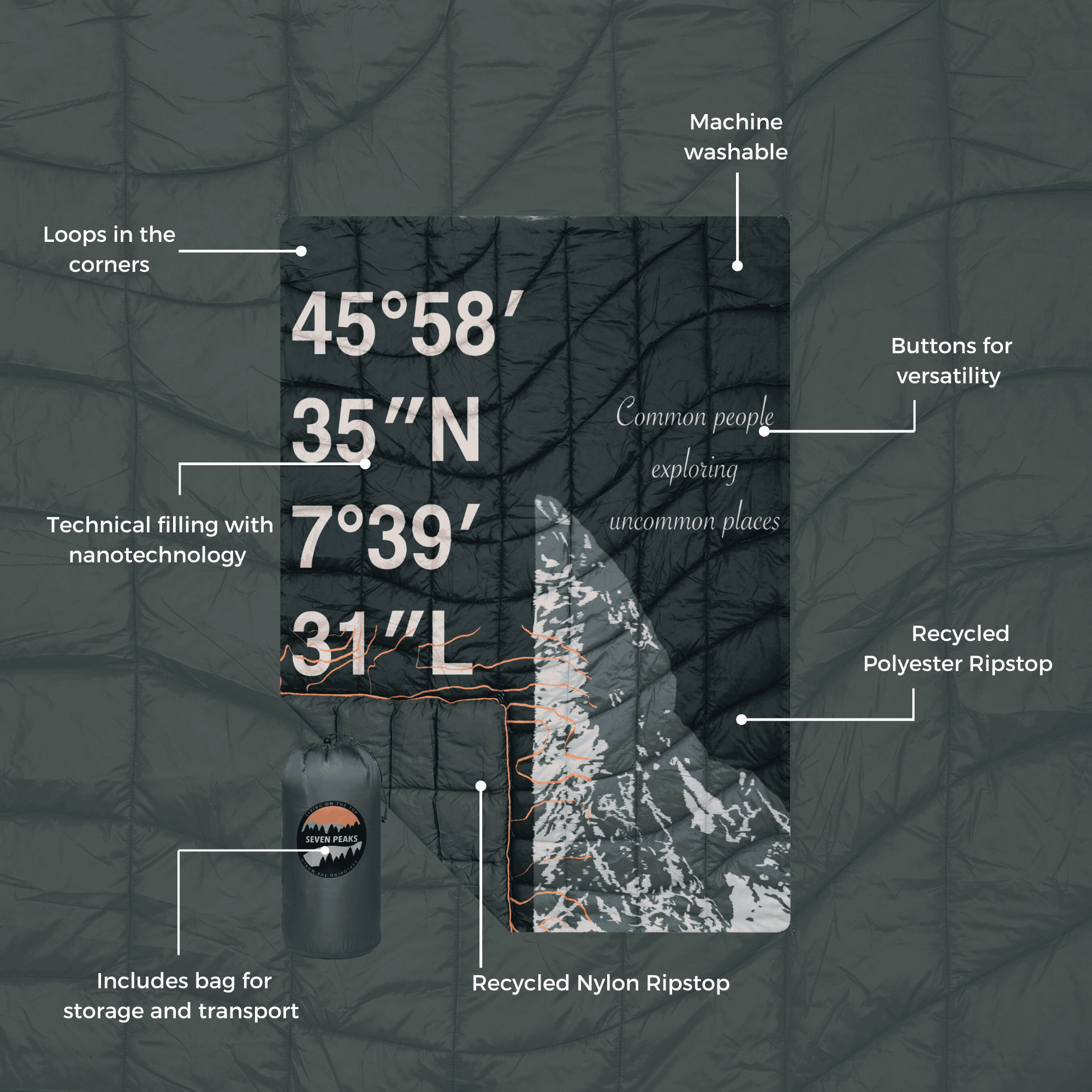 · Buttons to use it as a poncho, sleeping bag or connect them together