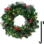 VIVID XMAS DECOR: JOIEDOMI 20?Pre-lit Christmas Wreath includes 60 branch tips, 4 Red Berries, 4 Pine Cones & 10 Glitter Pine Needles. Our wreath set even comes with a 15?black door hanger to make the setup easier! It?? time to add charm to your place with this lovely realistic wreath for the wonderful winter and Christmas.