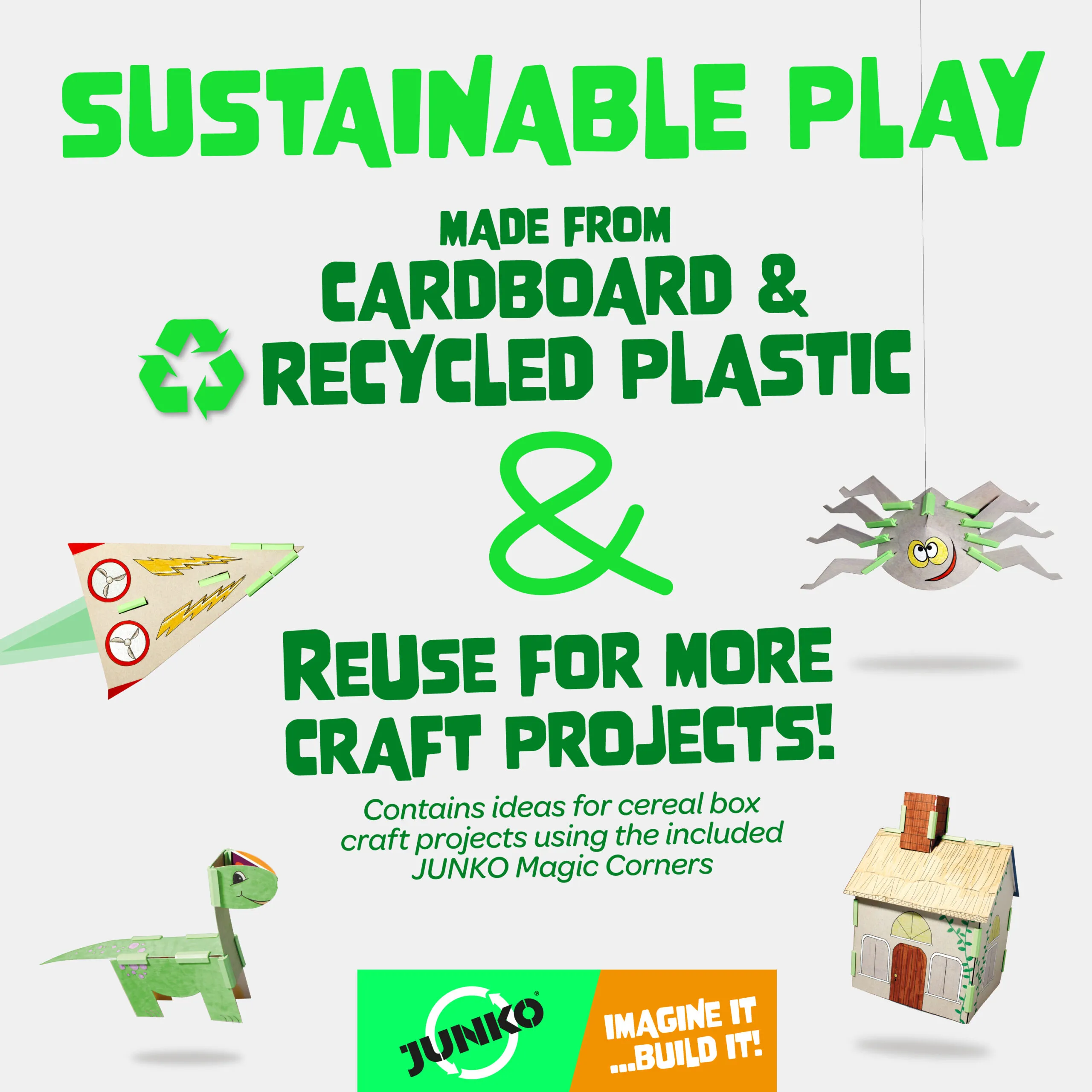 JUNKO ‘Infinite Play’ Promise – The Parts Are Reusable With Cereal Box Type Card To Make Loads More Toys And Art.