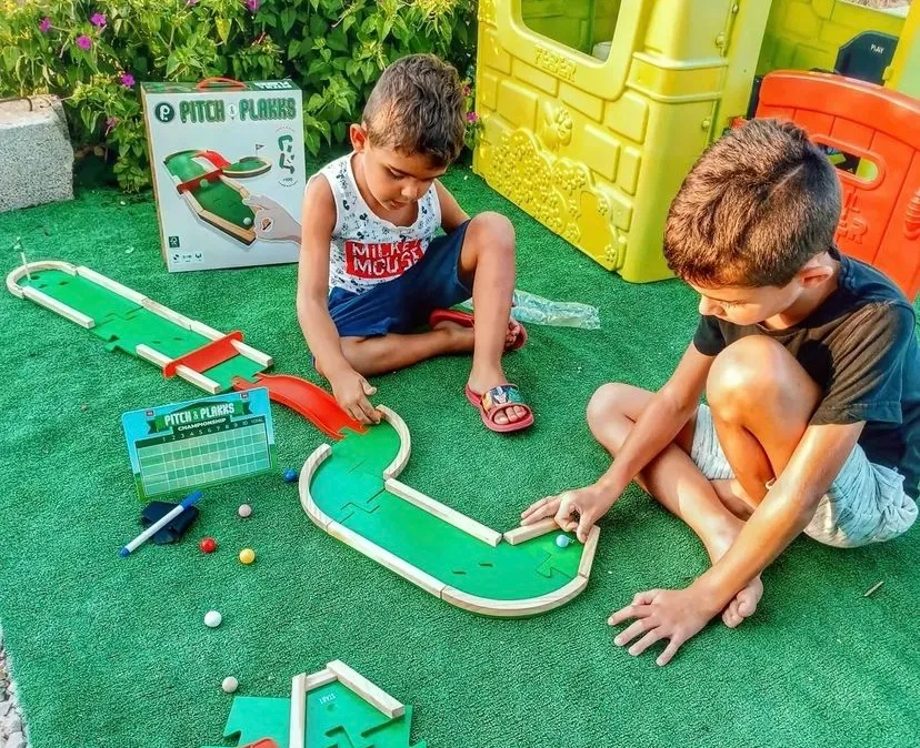 Tee off for miniature golf excitement with Pitch&Plakks Mini Golf. This engaging, DIY mini golf game lets you create and customize your own indoor golf courses. Test your precision and putting skills as you navigate obstacles, bunkers, and tricky holes. Designed for players of all ages, Pitch&Plakks Mini Golf is the ultimate blend of creativity and competition. Bring the joy of golf into your home and start swinging for a hole-in-one today!