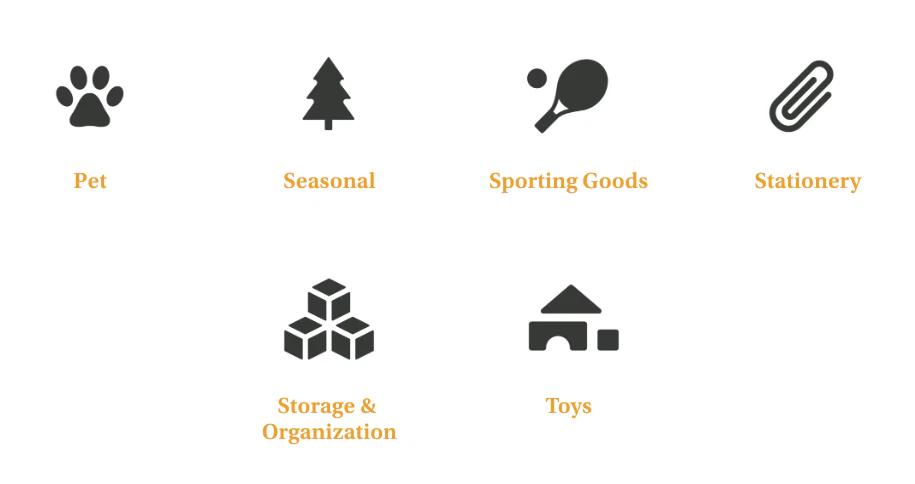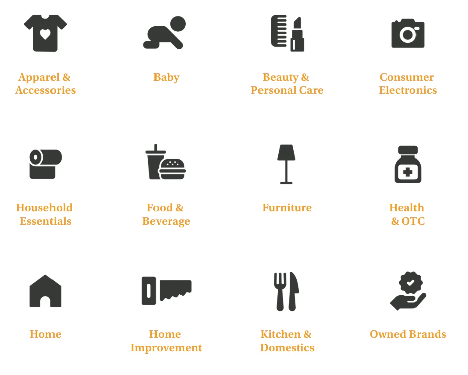 BEAUTY & COSMETICS | HEALTH & WELLNESS | FITNESS | SPORTING GOODS | PERSONAL CARE | PET FOOD | FOOD | BEVERAGES | CONSUMER ELECTRONICS | HOME CARE | FURNITURE & DÉCOR | HOME APPLIANCES | HOUSEWARES | DIY SUPPLIES | FASHION ACCESSORIES | JEWELRY